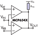 Рисунок 3. Использование MCP6547 в качестве двухпорогового компаратора