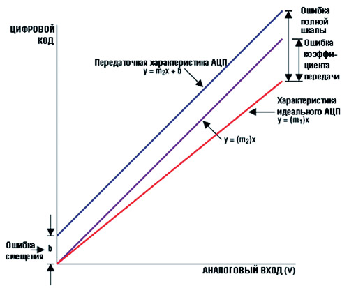 К примеру, для решения некоторой технической задачи разработчик системы сбора информации использует 12-разрядный АЦП. К своему ужасу, в заключительной стадии разработки, он обнаруживает, что цифровые значения кода преобразованных аналоговых сигналов не соответствуют разрешающей способности преобразователя. Чтобы этого не произошло, необходимо полное понимание специфики работы АЦП. Прохождение сигнала по цепи приборов накапливает суммарную ошибку. Важно, чтобы она не была выше некоторого предела. Часто АЦП является ключевым компонентом схемы, поэтому выбор преобразователя требует максимального внимания. Точность АЦП зависит от нескольких ключевых условий, которые включают: ошибку интегральной нелинейности, смещение, ошибку от коэффициента передачи, точность опорного напряжения, температурный коэффициент, характеристики прибора по переменному току.