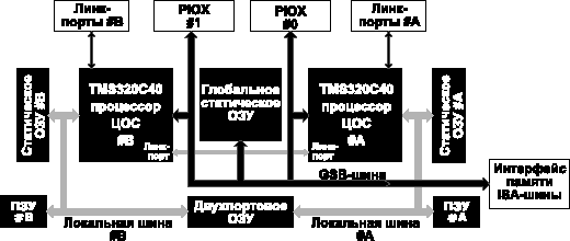 различной архитектурой (рис. 4). Во-первых, процессоры ЦОС TMS320C40 объединены с помощью общей глобальной