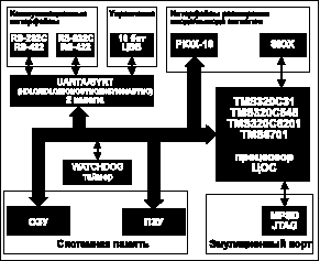 | Cопроцессор ЦОС | Управляющий интерфейс | Процессор ЦОС | Память | Интерфейсы расширения на плате |
